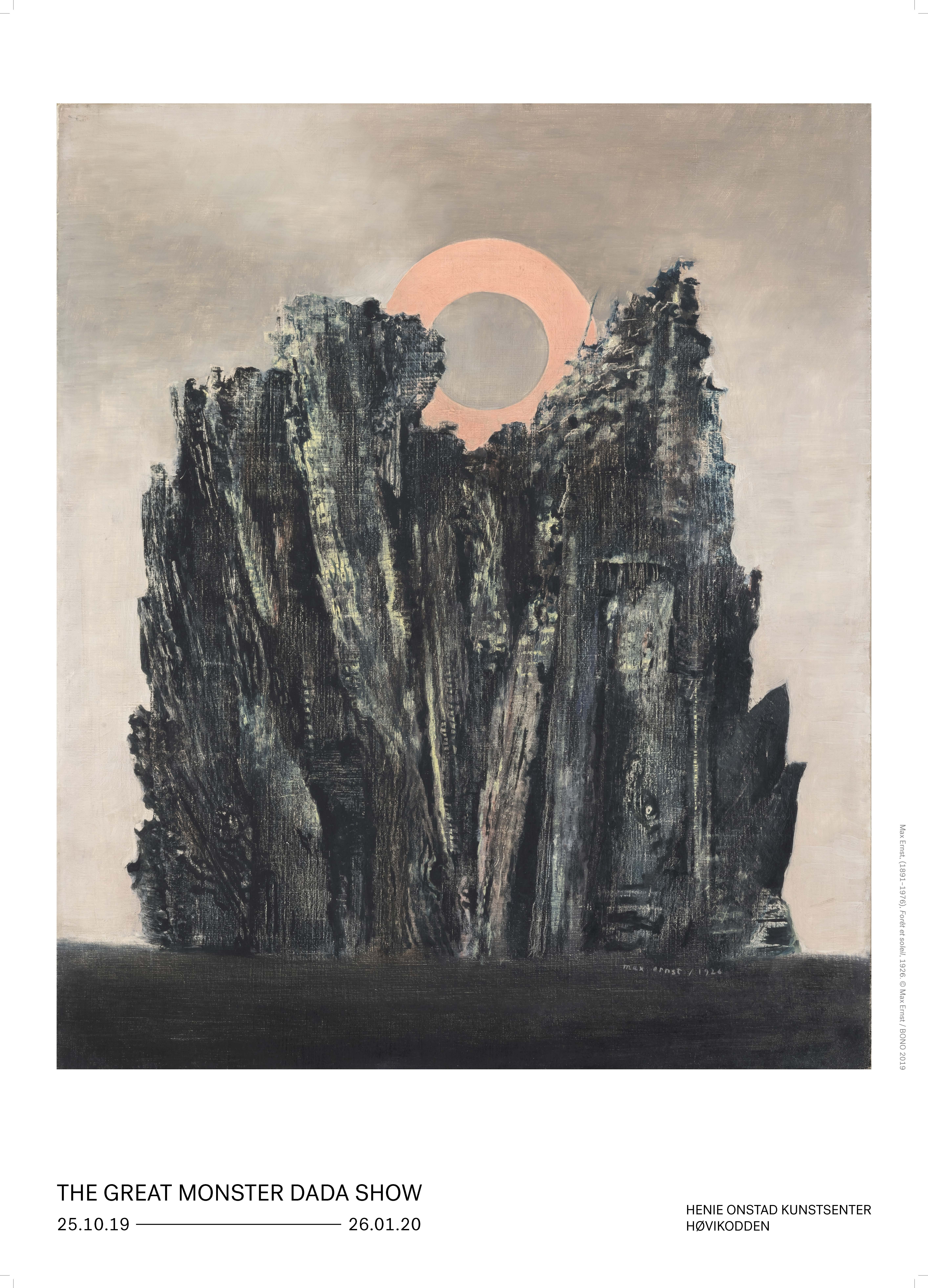 Plakaten ble laget til utstillingen The Great Monster Dada Show, 2019.
